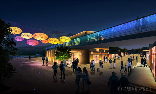 整體以暖色調(diào)為主,局部選擇彩色或高色溫光源點綴,凸顯熱鬧繁華的商業(yè)氣氛。通過對項目景觀的分析,結(jié)合建筑風(fēng)格,系統(tǒng)的規(guī)劃照明水平、控制亮度等級對于表現(xiàn)項目主次、引導(dǎo)游客、豐富夜景、節(jié)約能源顯得尤為重要。