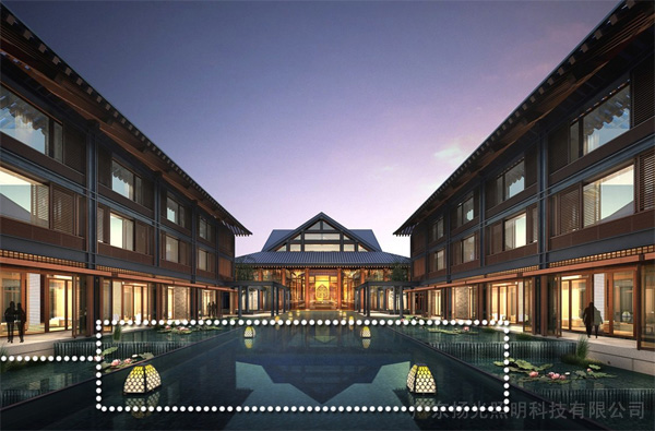 溫泉景區(qū)內(nèi)部空間的照明設(shè)計(jì),意在營(yíng)造不同的燈光氛圍,光色以暖黃為主,根據(jù)功能定位與景觀布局,營(yíng)造溫馨、舒適、釋然怡神、品味養(yǎng)心、親近融合的休閑氛圍,或明亮舒敞,或靜謐優(yōu)雅..