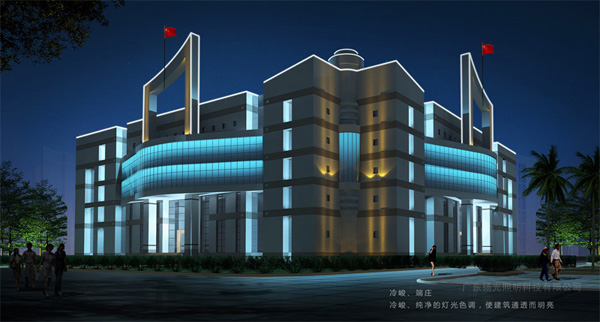 本次設(shè)計(jì)范圍為行政辦公建筑,針對(duì)建筑功能特點(diǎn),我們的燈光定位為簡(jiǎn)潔、高雅,通過(guò)純凈、明亮的燈光,來(lái)體現(xiàn)公正、開(kāi)放、廉明的政府形象。