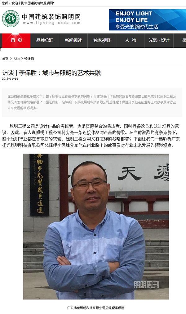 11月14日,《照明周刊》采訪了廣東揚(yáng)光照明科技有限公司總經(jīng)理李保勝。李總對《照明周刊》記者分享了他創(chuàng)業(yè)路上的故事及公司末來發(fā)展以及行業(yè)的發(fā)展前景。