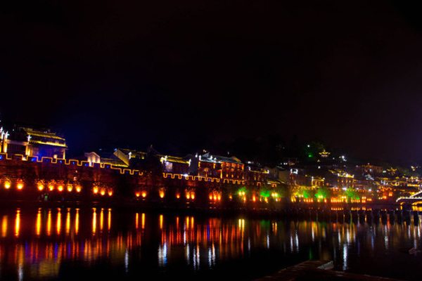 最后的旅游景點(diǎn)是鳳凰古城,常聽(tīng)去過(guò)的人說(shuō):來(lái)鳳凰不僅要欣賞沱江兩岸若思迷幻的日景,更要欣賞沱江兩岸璀璨迷人的夜景,否則,你不算來(lái)過(guò)鳳凰。果不其然,鳳凰之美,一半在于夜景,隨著夜晚的降臨,風(fēng)凰古城到處燈火輝映,沱江邊的吊腳樓倒影在水中,萬(wàn)名塔和虹橋通體金黃,金碧輝煌如天上宮闕,兩相輝映,人間天堂。