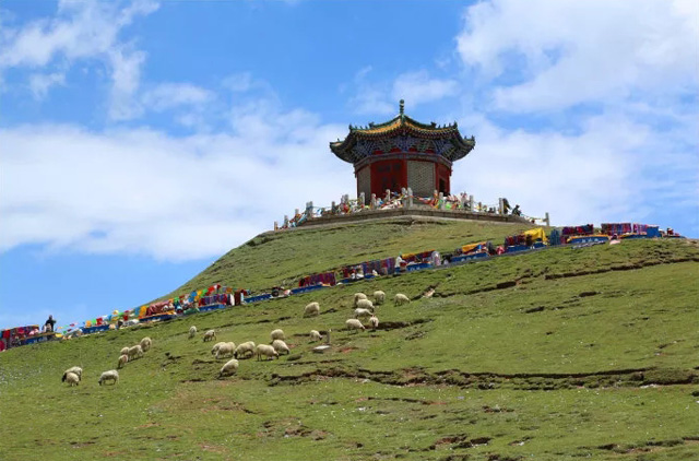 一路前行來(lái)到青海農(nóng)牧區(qū)的分界嶺---日月山,日月山是一個(gè)分界點(diǎn),東側(cè)阡陌良田,一派塞上江南風(fēng)光;西側(cè)草原遼闊,牛羊成群,是一幅塞外景色。日月山是宋元各代甘青地區(qū)通往川藏一帶的必經(jīng)之路,也是文成公主經(jīng)日月山赴吐蕃和親形成的唐蕃古道。高原上的日月山,山勢(shì)起伏,峰嶺高聳,在若隱若現(xiàn)的紅土層里,仿佛看到了唐朝文成公主進(jìn)藏和親時(shí),途徑日月山給漢藏人民留下的許多美好的記憶和傳說(shuō)。