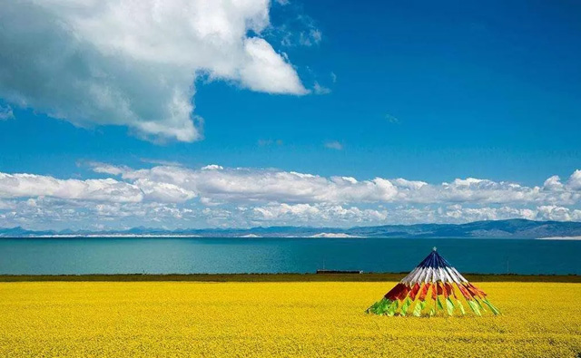 經(jīng)過(guò)日月山,到達(dá)青海湖。青海湖又名“措溫布”,即藏語(yǔ)“青色的海”之意,位于青海省西北部的青海湖盆地內(nèi),既是中國(guó)最大的內(nèi)陸湖泊,也是中國(guó)最大的咸水湖。由祁連山的大通山、日月山與青海南山之間的斷層陷落形成。