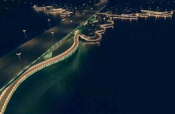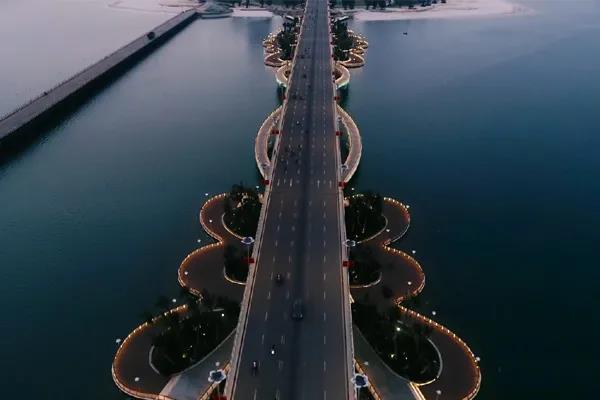 恒大?;◢u1號(hào)島入島主橋梁是?;◢u的三個(gè)人工島連接陸地側(cè)濱海大道的一條主要通道,橋長(zhǎng)608米,寬17米。