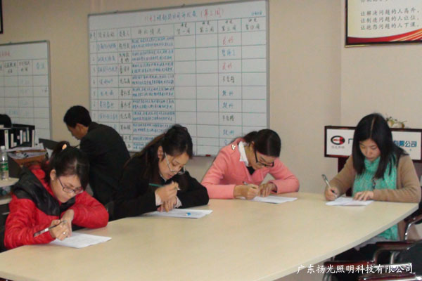 為了考察公司員工對專業(yè)知識的理解,運(yùn)用及掌握情況,強(qiáng)化員工服務(wù)意識,以考促學(xué),以學(xué)促用。11月30號,公司業(yè)務(wù)部,工程部,采購部,電子商務(wù)部進(jìn)行了體育場館照明知識測試。